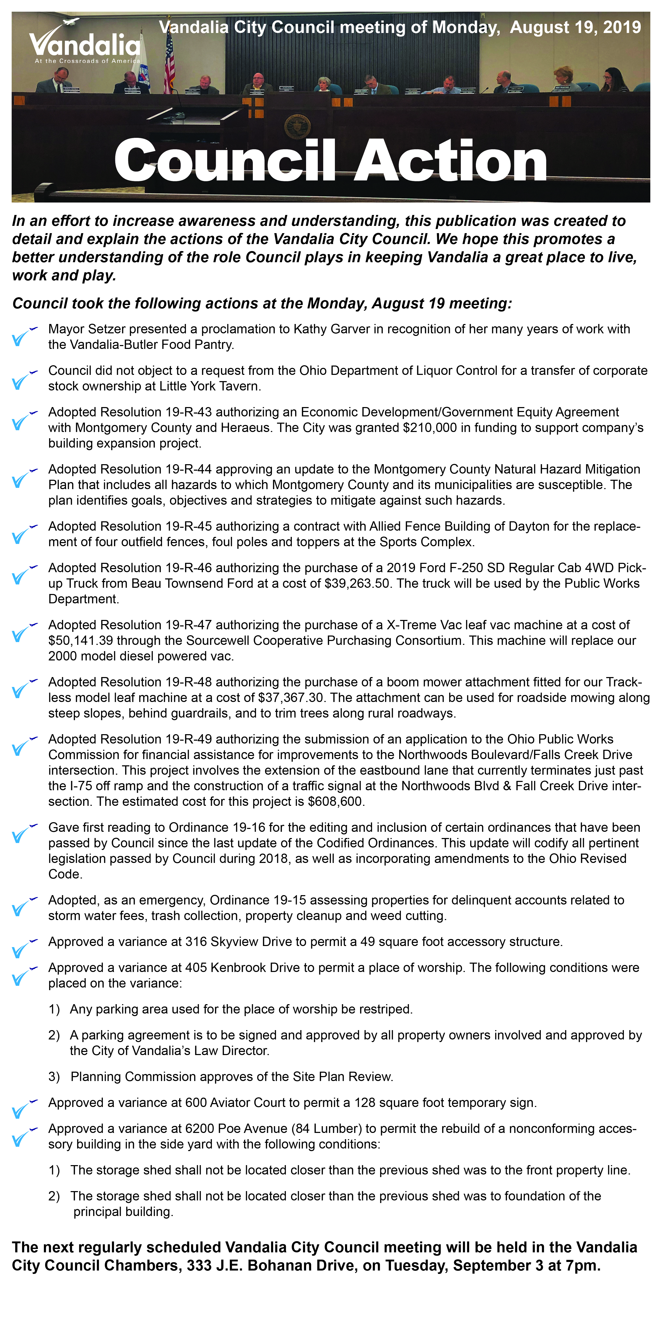 December 20, 2019 Council Action Publication (Special Meeting) (PDF) December 16, 2019 Council Action Publication (PDF) December 2, 2019 Council Action Publication (PDF) November 18, 2019 Council Action Publication (PDF) November 4, 2019 Council Action Publication (PDF) October 21, 2019 Council Action Publication (JPG) September 16, 2019 Council Action Publication (PDF) September 3, 2019 Council Action Publication (PDF) August 19, 2019 Council Action Publication (JPG)